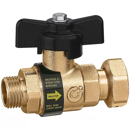 | 65500LBMF020020 - Ballstop vanne à sphère avec clapet incorporé, écrou tournant et trou de plombage mâle-femelle - 3/4" - 3/4" | 3/4" - 3/4" | 0,3465kg | 36.11 € tax excl. |