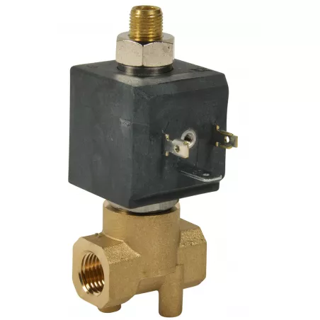 The EBB 61/62 solenoid valve is a 3/2 brass solenoid valve with direct control, normally open (NO) or normally closed (NC), for all voltages. Connection: 1/4" G.