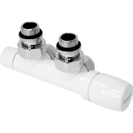 Towel radiator set with a pair of manually-operated, thermostatically-controllable angle valves for multilayer pipes.