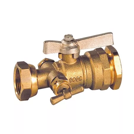 Vanne à écrou prisonnier BSP / Raccord DECA droit à purge 1/4“ avec manette laiton 2/3-1/3 DN25-3/4“